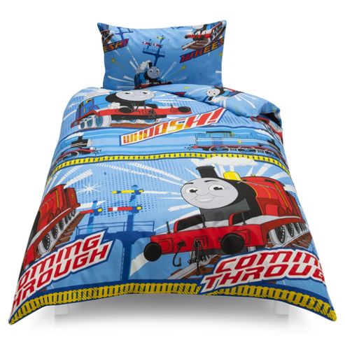 Join Thomas on a colourful trip to dreamland with this Thomas the Tank Engine officially licensed duvet set. Bright and bold in shades of red, blue and yellow, the duvet cover features different all-over prints on the front and reverse so you can change the look.Complete with a matching pillowcase, the Thomas the Tank Engine single duvet set is made from machine washable, easy care polyester microfibre.Combine the Thomas duvet set with the Thomas the Tank Engine fleece blanket (465-3453) and curtains (398-7012) for a co-ordinated look. You can also snuggle up and stay cosy and warm while reading or watching TV in the matching Thomas sleeved fleece (498-9276).