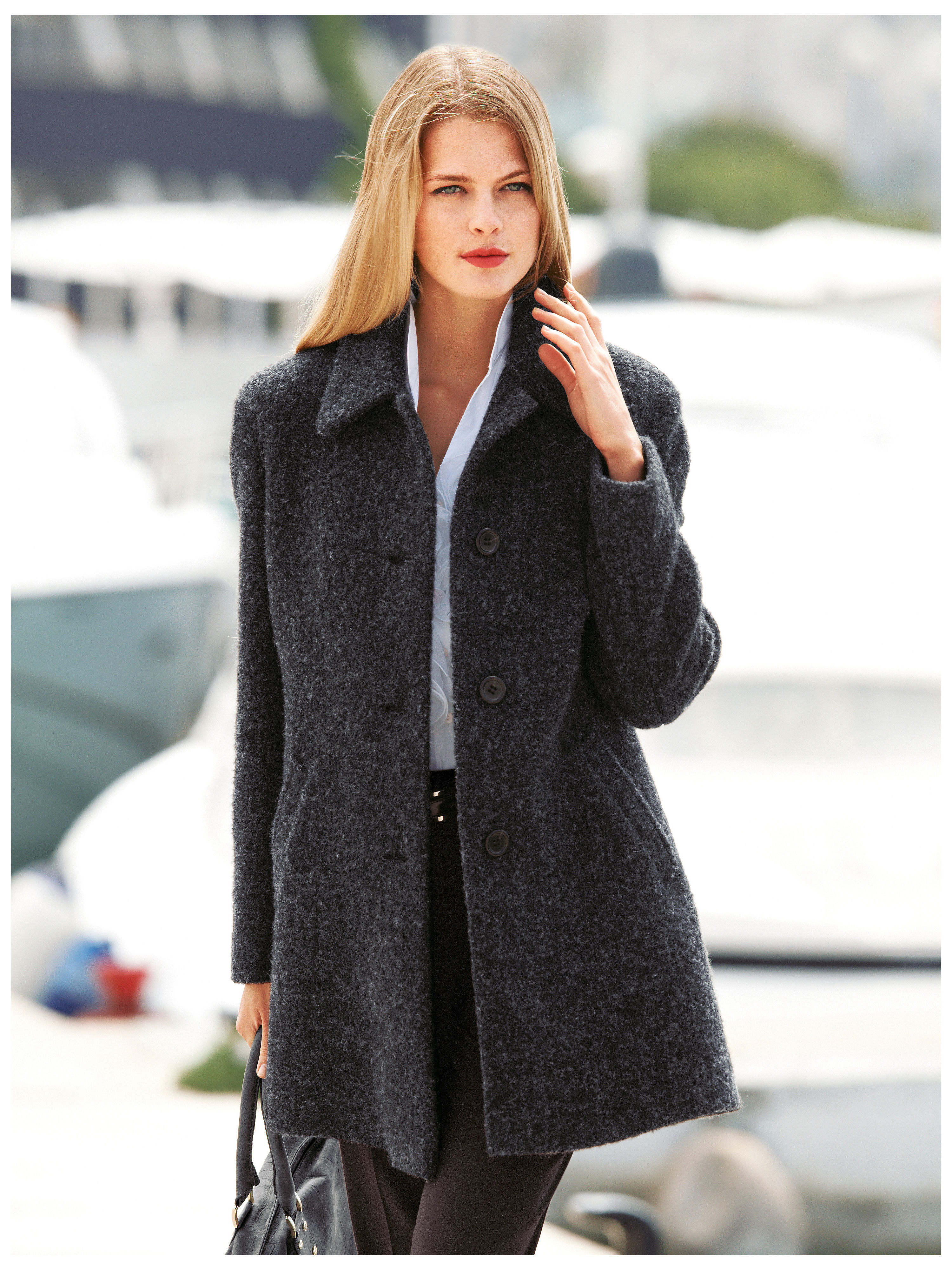 Short coat 95% alpaca, 5% nylon. Both rare and precious. A premium fabric creation made of baby alpaca, the first shearing of young alpaca camels. The high-pile cloth possesses a silky sheen, a wonderfully soft feel and extraordinary lightness. Elegantly...