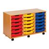 Storage unit 24 shallow trays - Carcass Only. 18mm MFC Beech Effect Board. Mounted on 4 castors, 2 of which are braked to secure when in use. Supplied empty to enable your own tray configuration. Trays NOT Included.