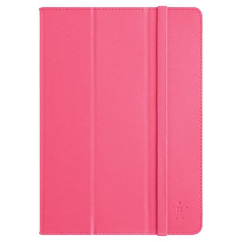 Help to protect your New iPad from dust and scratches with this Belkin Trifold smooth Folio for iPad 5. In pink, the Trifold Folio folds back on itself to form an angled stand and features an elastic closure strap. Includes 2 year manufacturer's warranty.
