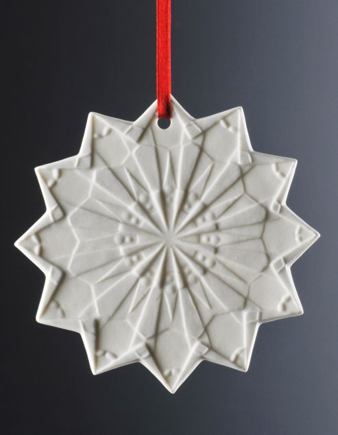 Features: Ornament; Christmas Tree Decorations range; Material: Paper thin porcelain; Snow Star design; Complete with red silk ribbon; Created by hand at the highest level of craftmanship for a special yuletide feeling; Height: 9cm;