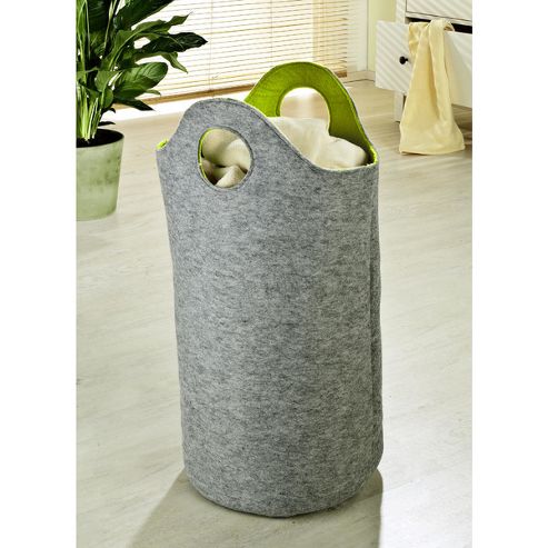 WKO1294_7089466 Features: -Universal laundry bag.-Colour: Grey / green.-Material: Felt.-Material (inner lining): Polyester.-Suitable as a decorative laundry bag or for collecting recyclable bottles.-With easy-care inner lining.-2 Handles for easy transport.-Capacity: 35 or 59 Litres. Options: -Available in 36cm or 38cm width sizes. Color/Finish: -High quality finish. Dimensions: -36cm Universal laundry bag dimensions: 36.5cm W x 44.5cm D.-38cm Universal laundry bag dimensions: 38cm W x 46cm D.