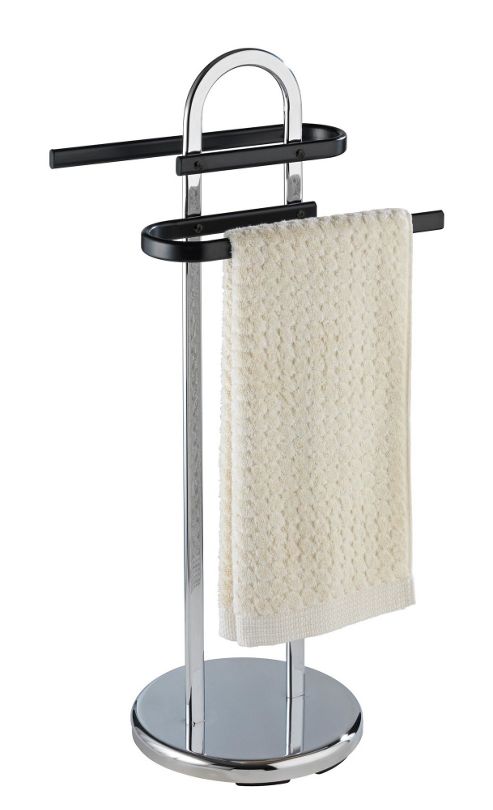 Features: Towel & coat rack; Colour (arms): Black; Curved arms; Offers space for towels and clothing; Heavy base ensures secure footing; Chromed finish; With 2 towel bars; Dimensions: 88cm H x 47cm W x 28cm D;