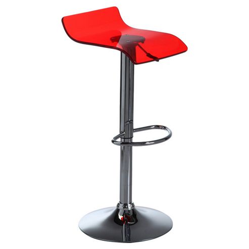 This modern bar stool is both striking and practical.Features: Available in clear, red or lime colour; Chrome base and footrest; Adjustable height; 360 degree swivel; Acrylic construction; Assembly required; Manufacturer provides one year warranty;