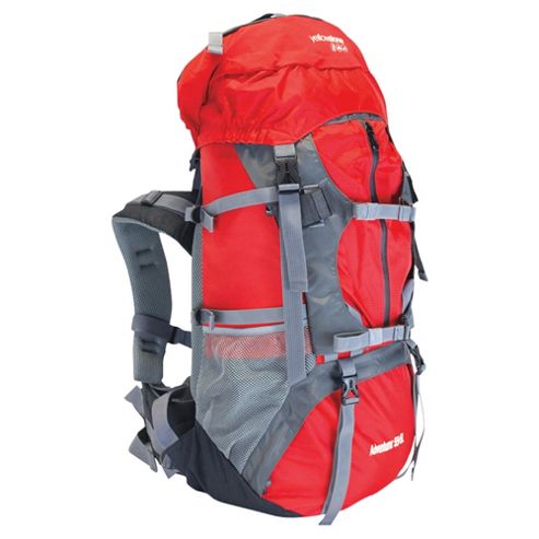 This Yellowstone Adventurer rucksack in red is ideal for camping, hiking and backpacking. Made from ripstop fabric, the 55+5L rucksack features 2x main internal compartments, a zip pocket on the front and mesh side pockets. It has a padded back panel that has been ergonomically designed to offer comfort, as well as padded shoulder and waist straps, which can all be adjusted accordingly.An integral rain cover is also included for unpredictable weather conditions and there---s even a holder for storing a walking pole. With its functional features and robust design, the Yellowstone Adventurer 55+5ltr rucksack is a practical choice for expeditions.H67xW33xD18cm.